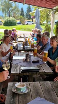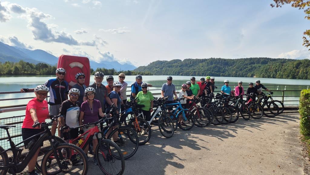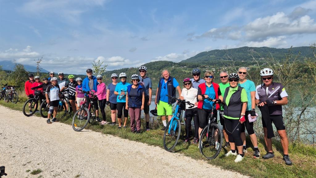 05.12.2025 25 Radler und -innen machten sich von Pörtschach aus auf die diesjährige Radrundtour auf, welche vom Wörthersee über das Rosental wieder zurück nach Pörtschach führte. Fast 70 Kilometer wurden überwiegend mit E-Bikes zurückgelegt. Geführt von C. Berg wurde die Frühstücksrast, nach flottem Anstieg in Aich bei Velden, erreicht. Leider war der Himmel etwas wolkenverhangen, sodass die Aussicht auf die Karawanken und den Mittagskogel nicht optimal war. Ein Stück am schönen Drauradweg und auf Wegen durch kleine Dörfer wie Hundsdorf oder Weizelsdorf führte die Etappe zum Mittagsziel am Ressnigteich. Nach dem Mittagessen erwartete die Radlertruppe der kurze, aber steile Anstieg vom Ferlacher Kraftwerk über den teilweise ausgewaschenen Forstweg hinauf nach Maria Rain – ein nicht sehr gut gepflegter Abschnitt im Kärntner Radwegenetz und eher für Mountainbiker geeignet. Unfallfrei konnte die Runde bis zum Endpunkt weitergefahren werden. Erstmals mussten wir aber einige technisch bedingte Ausfälle hinnehmen. Ein Reifenplatzer und ein Patschen wurden verzeichnet, diese führten zu einem frühen Tourende für zwei Teilnehmer. Letztendlich trafen sich wieder alle bei einem Abschlussgetränk im Gasthof Bad Stich, dort wurde natürlich über den schönen Radausflug durch die Kärntner Landschaft gesprochen.