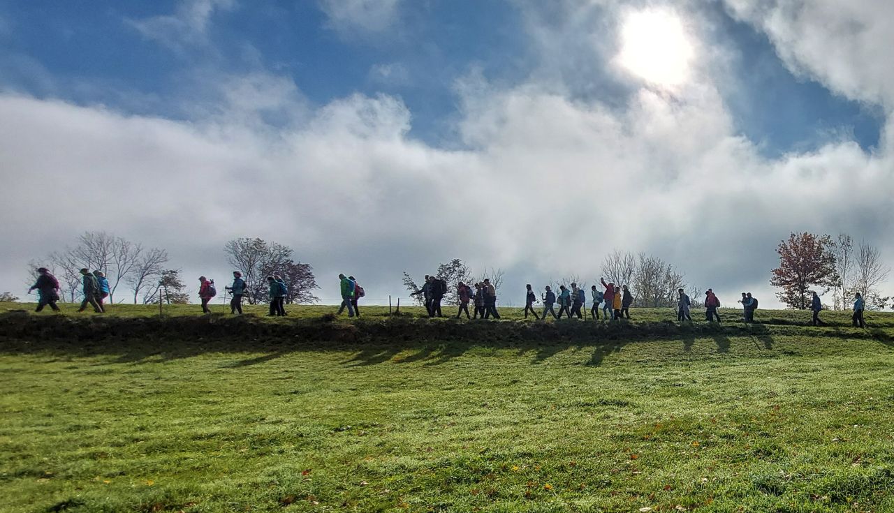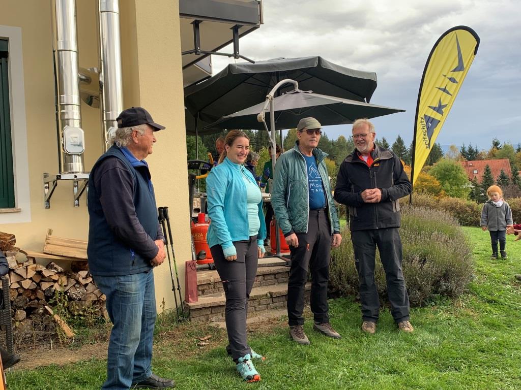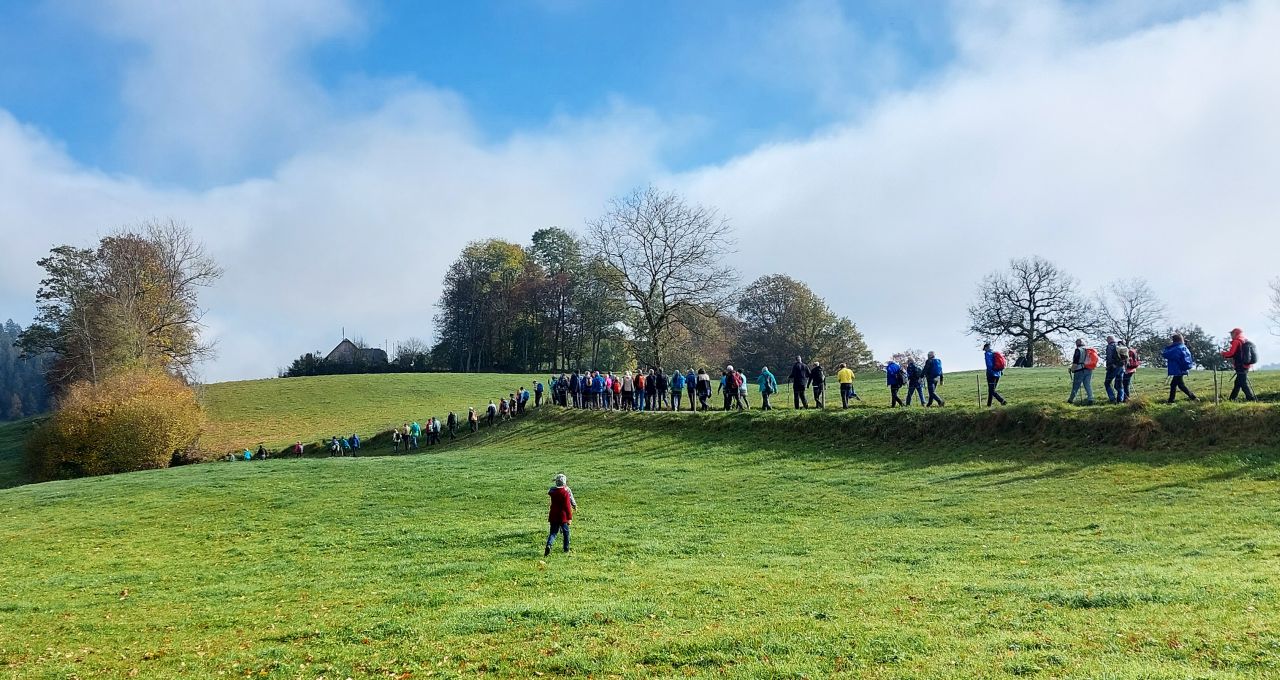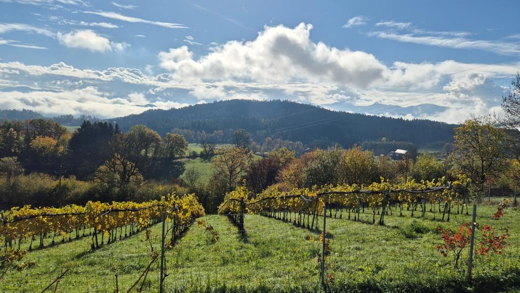 05.12.2025 Noch im tiefliegenden Nebel versammelten sich früh morgens am Nationalfeiertag die Teilnehmer an der Familiensternwanderung 2025 aus den drei Gemeinden Moosburg, Krumpendorf und Pörtschach am Bahnhof Pörtschach. Herzlich empfangen durch Obfrau Carolyn Köfer und Galeristin Elisabeth Plank wurden zur Begrüßung in der Galerie ZUGänglicheKUNST Kaffee und Kuchen kredenzt und auch die Gelegenheit geboten, die Ausstellung von Robert Krenn zu besuchen. Die Kultur war in diesem Jahr sehr hoch angeschrieben: zuerst bildende Kunst, dann Weinkultur – und schließlich musikalisch außergewöhnliche Performancekultur. Nun im Detail: Mehr als 100 Wanderer, unter anderem auch hohe politische Vertreter der Gemeinden, nahmen an dieser Familiensternwanderung teil, welche vom Bahnhof über den Kåte und den hohen Gaisrücken zur Labestation beim Karolinger Weingut in Vögelitz/Gemeinde Moosburg führte. Dort erwarteten die große Wanderschar nicht nur blauer Himmel und Sonnenschein, sondern auch eine Weinverkostung vom Feinsten. Die ambitionierten Winzer Gerfried Pink, auch bekannt als Geschäftsführer der Raiffeisen Landesbank in Pörtschach, und Robert Mack präsentierten in traumhafter Kulisse unterschiedliche Weine, welche nicht nur sehr gut mundeten, sondern alle ob ihrer Qualität begeisterten. In einem kurzen Vortrag der beiden Winzer wurde der Werdegang vom Beginn ihres Weinbaus bis hin zur mehrfachen Goldprämierung erläutert. Dazu wurde ein hausgemachter Leberkäse serviert, der ebenfalls eine Auszeichnung verdient hätte. Herzlichen Dank an die Familien Pink und Mack mit den vielen Helfern für die perfekte Umsetzung der Labestation! Weiter ging es auf den Pirkerkogel, wo bereits der bekannte Percussionist und Klangkünstler Klaus Lippitsch auf die Wandergruppe wartete. Auf Vogelstimmenpfeifen, am Didgeridoo oder mit Glocken in einem Wassereimer zauberte er eine besondere Klangwelt hervor. Eine etwas „schräge“ Performance, welche dem Publikum sehr gut gefiel. Den letzten Programmpunkt der Wandertour bildete traditionell ein gemütliches Zusammensitzen im Gemeindedreieck am Ferienhof Binz – musikalisch begleitet von den „Zsammgspielten“ und verköstigt von der Mannschaft von Pritschitz Aktiv sowie der Hausherrin Karin Binz. Zum Glück hatte sich der herannahende Regen nicht sehr beeilt und die Veranstaltung nahezu trocken enden lassen. Herzlichen Dank an alle Mitwirkenden und Helfer, aber auch an alle drei teilnehmenden Gemeinden, die Raiffeisen Länderbank und die Klimamodellregion für die finanzielle Unterstützung der Veranstaltung!