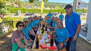 01.08.2025 Normalerweise „ist der Weg das Ziel“ für die Pritschitz aktiven Wanderer – am Sonntag, den 12. Juli, gab es ein weiteres lohnendes Ziel unterwegs: die geschichtsträchtige Henkelhütte in Tschriet, hoch über dem Ossiacher See. Die 450 Jahre alte Hütte könnte so einiges erzählen, gut dokumentiert ist die Zeitspanne ab 1960, als Arthur Graf Henckel-Donnersmark den ehemaligen Troadkasten mit einem Kredit erwarb und gemeinsam mit seiner Gattin, einer Wienerin, die Hütte als Fremdenpension mit vier Zimmern ausbaute. Der Beherbergungsbetrieb war bald als Sommerfrischeresidenz gut ausgebucht, der stattliche Graf servierte höchstpersönlich, meist in Lederhosen gekleidet, die Frau Gräfin bewies sich als vorzügliche Köchin. Die von Wanderführer W. Gallob ausgekundschaftete zehn Kilometer lange Strecke von Tschriet über Manessen endete in dieser urigen, von der jetzigen Besitzerin Sieglinde (übrigens eine Verwandte von Horst Simon) wunderschön renovierten Hütte. Nach einem wirklich ausgezeichneten Mittagessen wurden die 36 mitwandernden Pritschitz Aktiven musikalisch überrascht – Werner mit der Steirischen Harmonika spielte auf der sonnigen Terrasse der Hütte auf, was die bewegungshungrigen Aktiven zu so manchem Tänzchen animierte. Das von Wolfi organisierte „Rundumpaket“ erwies sich wieder einmal als überaus gelungen!